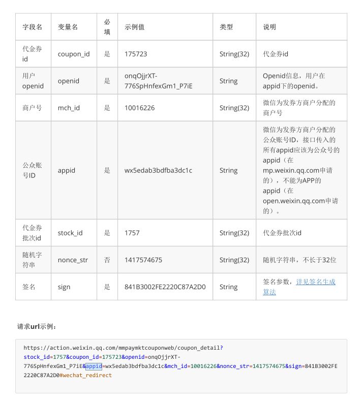 根据官方给的《查看券详情_对外文档》进行发放代金券,进行get请求的时候,一直跳转后页面报0x100005,请求方式我试过用js,a标签,后台跳转,一直都是这个问题,官方回答的是: