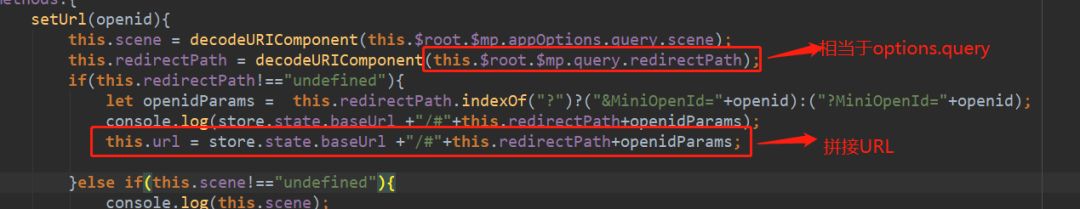 3、跳转方式为mpvue中直接给URL赋值