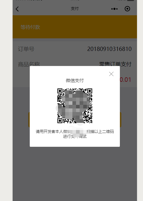 在pay页面调起支付接口,web开发者工具中弹出二维码