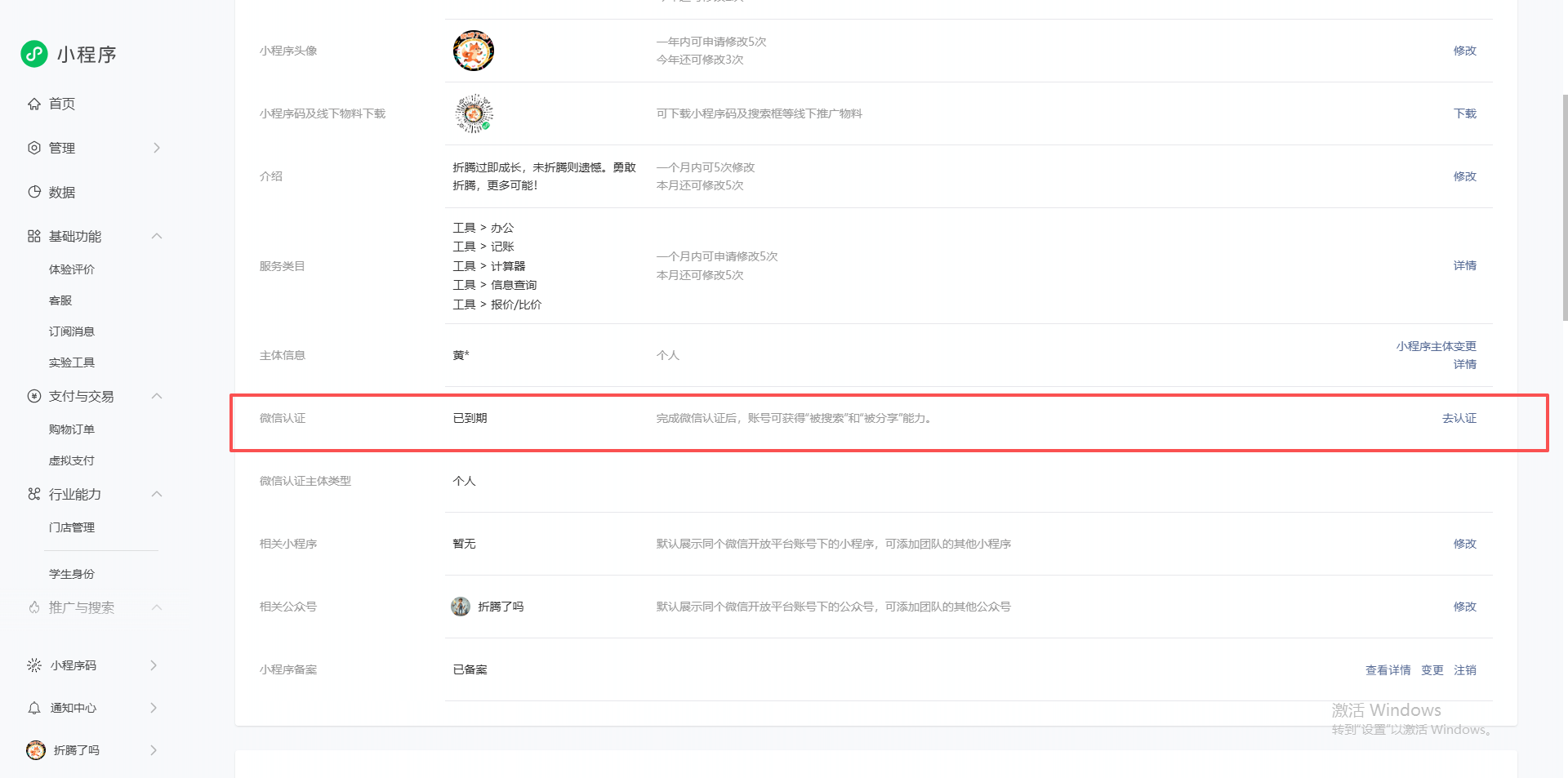 然后重新尝试还是不行,我问老师是不是真的要弄微信认证,但是我老师的也没有弄,和我一样,就完成小程序信息和类目,然后我用他的APPID,可以正常分享,但是切换到我的就不行,求各位大神帮忙