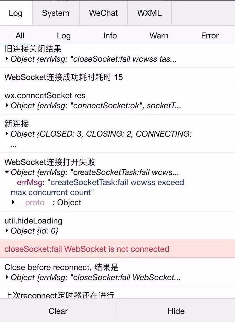 提示是wsssocket数量超限:fail wcwss exceed max concurrent count