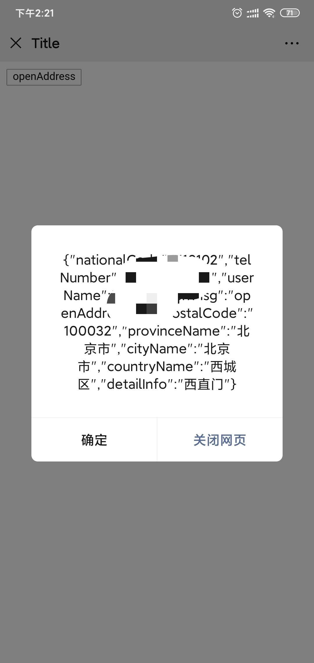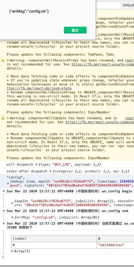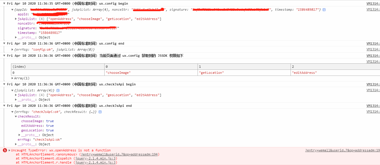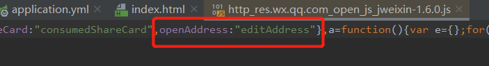 给jsApiList: ["openAddress"],在微信公众号调试工具出现的是"editAddress",如图下图所示:
