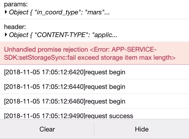 通过调用wx.getStorageInfo查看当前使用大小远没有达到最大值,但是偶现调用wx.setStorage()报错的情况,