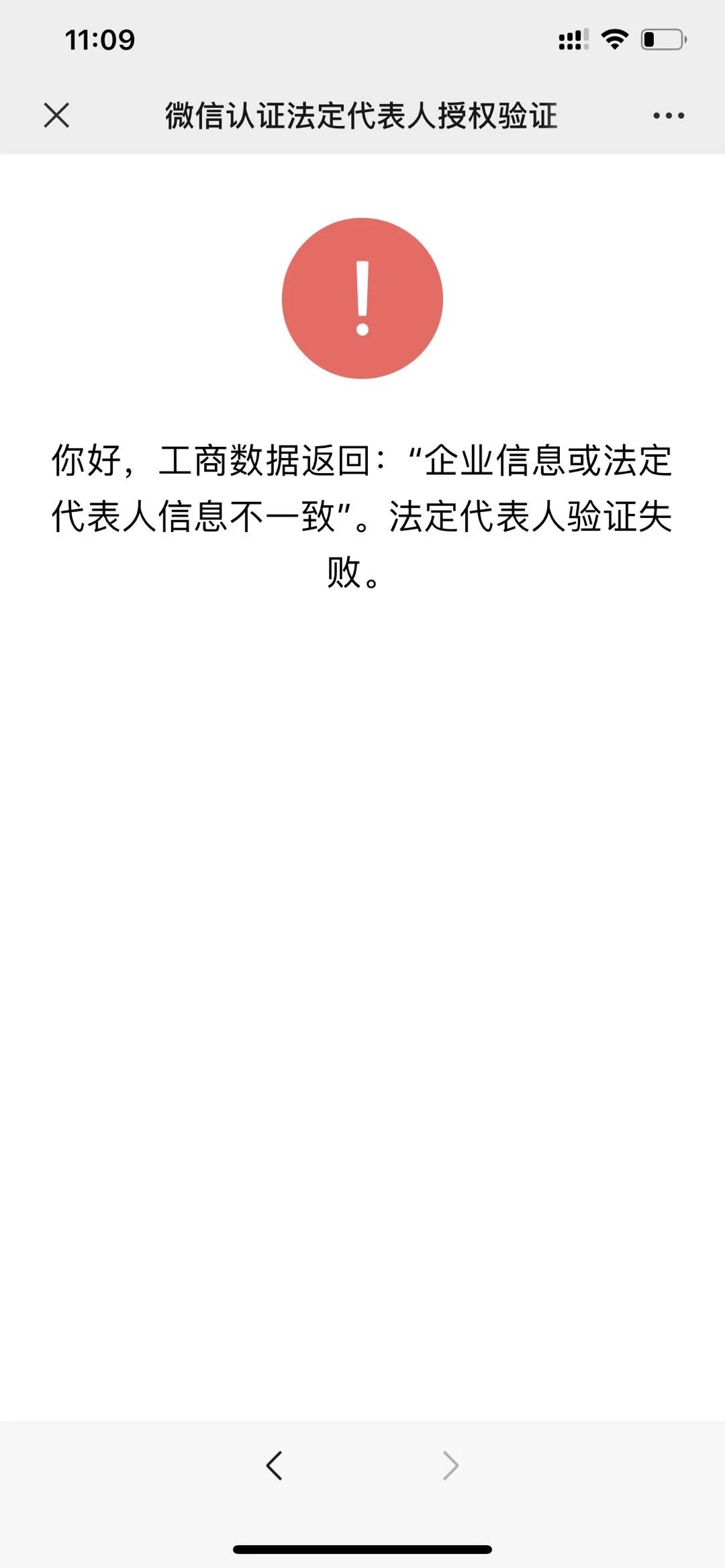 微信认证法人验证 工商数据返回企业信息或法人信息不一致,法定代表人验证失败怎么解决?