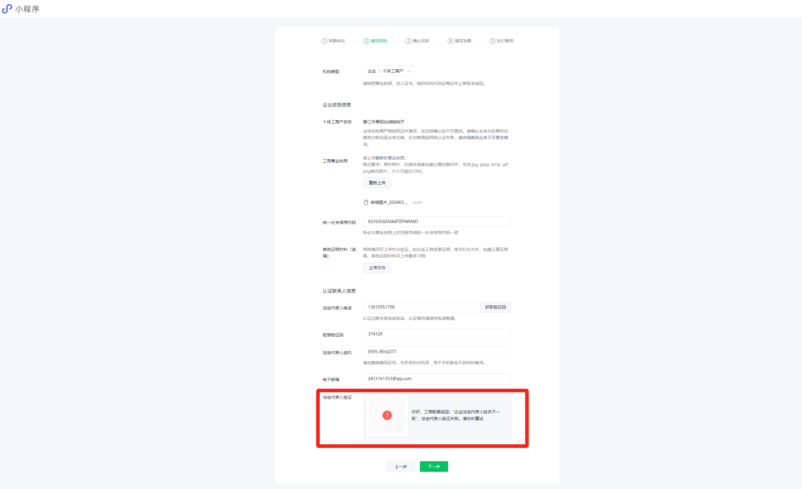 小程序微信认证一直显示不成功?请问如何处理?谢谢