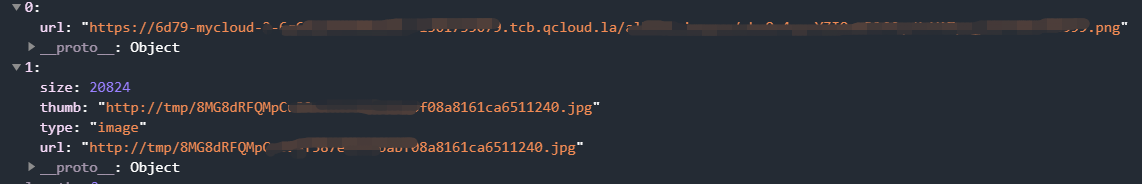 云开发,图片存云存储,fileId存云数据库,添加时是使用云函数uploadFile+getFileSystemManager+readFile上传的,添加和修改一个页面。图中0的url是getTempFileURL获取的,1的url是临时链接。