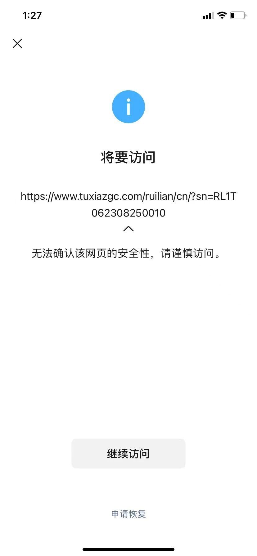 设备扫码出现 无法确认该网页的安全性,请谨慎访问。辛苦解除下