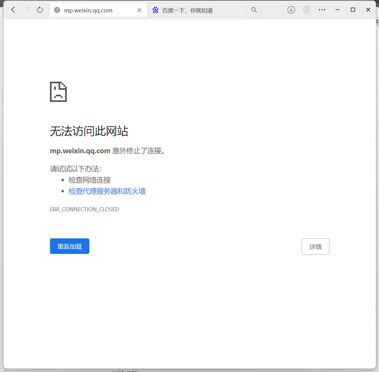 公司网络,用微信内置浏览器打不开微信公众号平台,浏览器却可以打开,手机端pc端都是一样,请问各位大佬有没有方法解决一下