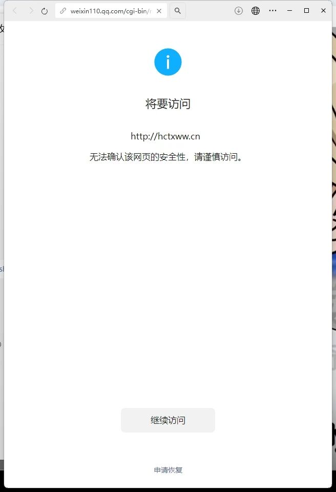 求助 微信内访问网站提示“非微信官方网页,请确认是否继续访问”的问题