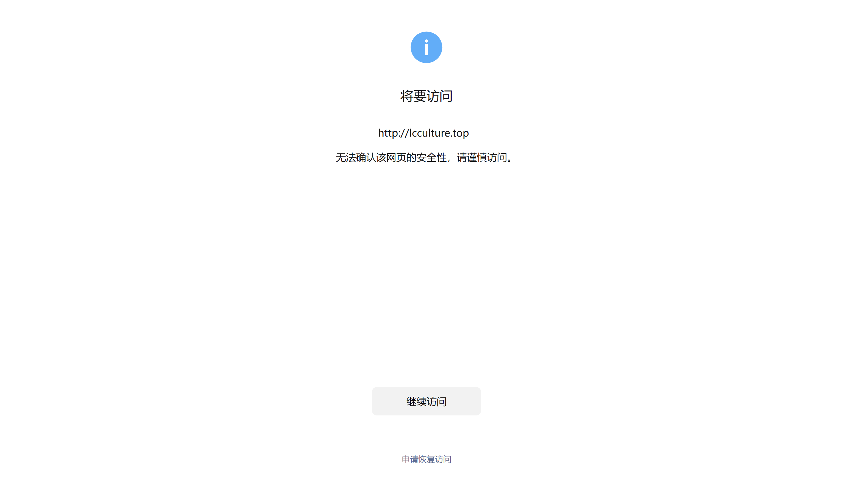 之前我们的网页在微信内打开提示“非微信官方网页,请确认是否继续访问”?,后面修好了,结果现在又变成了“无法确认该网页的安全性,请谨慎访问”。偶尔又会变成“非微信官方网页,请确认是否继续访问”。请帮忙看看怎么个情况?网站是https://lcculture.top/