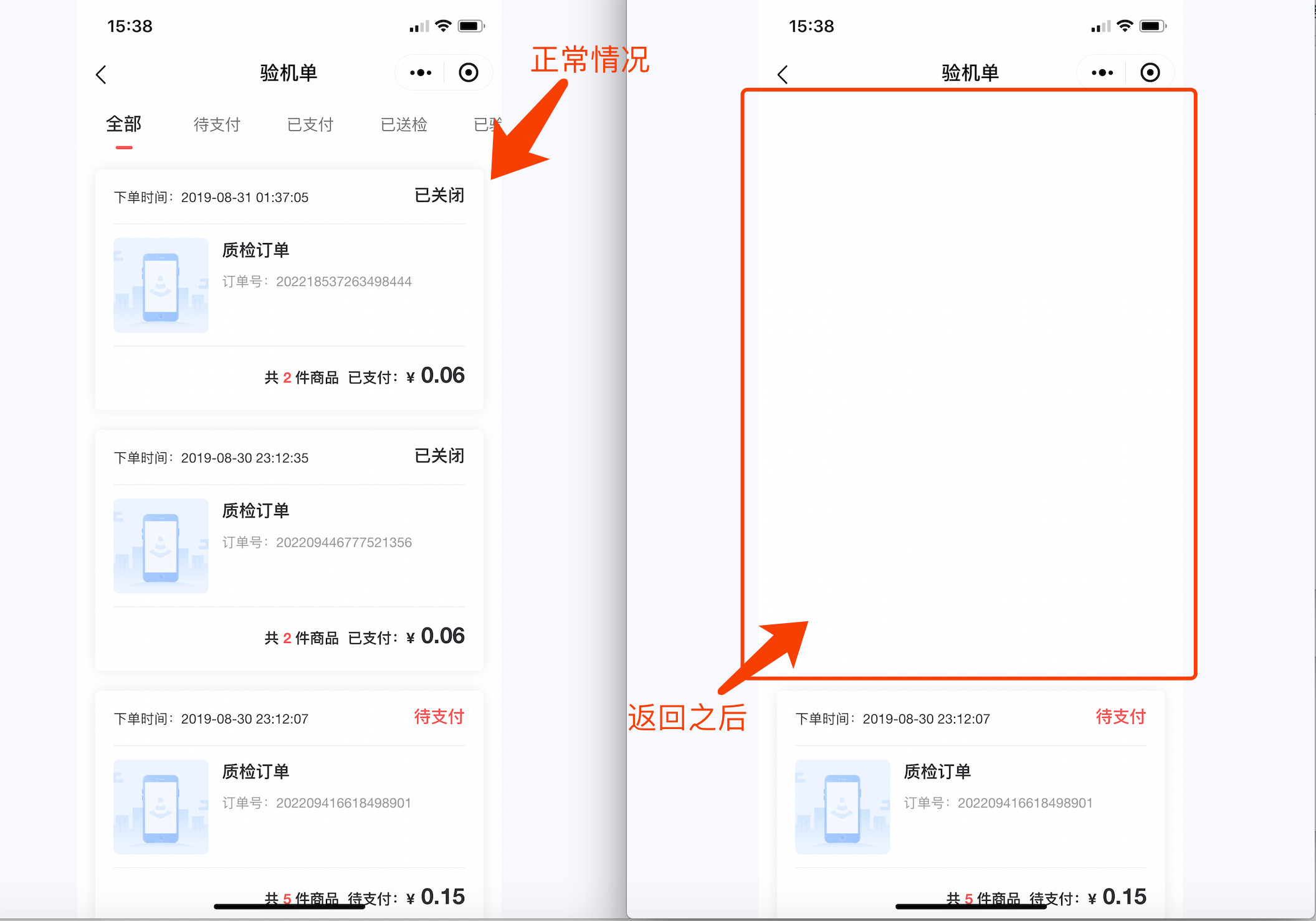 this.$router.push({name:'xxxx',params: {qualityOrderId:this.itemData.qualityOrderId}})另外,找QA的机器测试,只要是ios,都必现