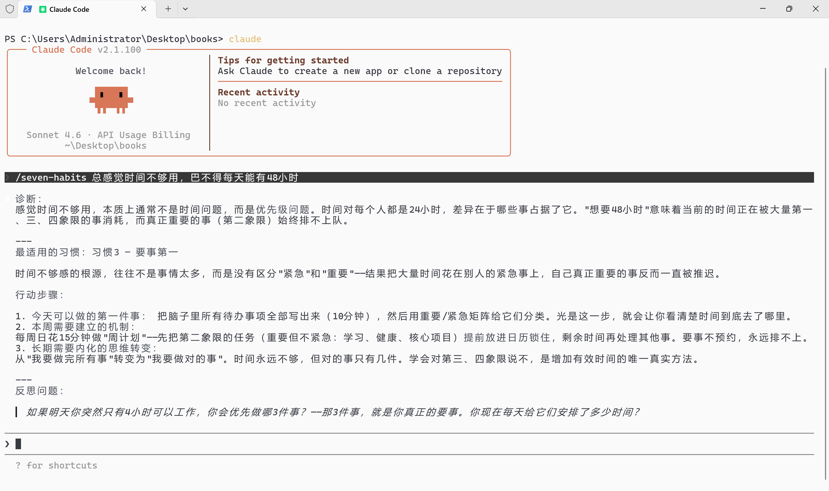 现在还能书做成一个skill,比如让ai用《高效能人士的七个习惯》里的方法论帮你分析现实中遇到的问题,有效避免读了不用,学了白学