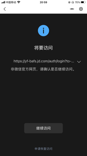 https://yf-bafs.jd.com 预发域名支持外网访问的 https://cname2bafs.jd.com线上域名 虽然一个代表预发 一个线上 但是都支持外网访问 并且业务域名都配置好了 线上域名不会有拦截 但是跳转到预发地址就提示 域名配置没差异 校验文件都能访问到 为什么表现不一致