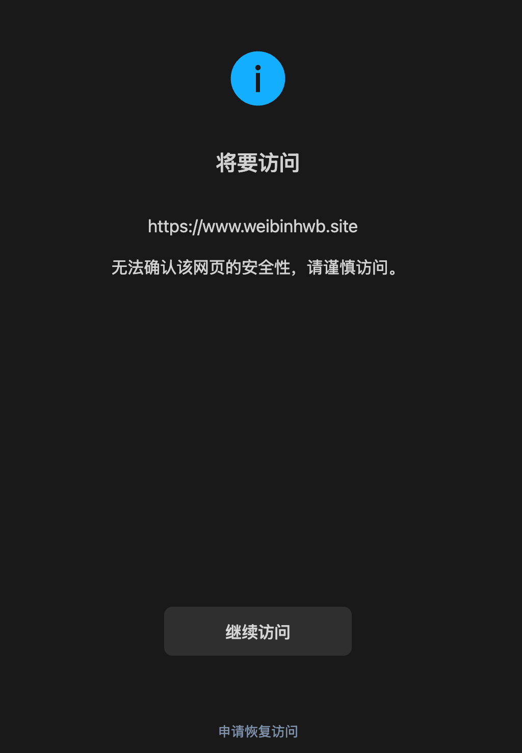 https://www.weibinhwb.site/,域名并未违规,但是在微信内无法直接访问,需要能恢复直接访问