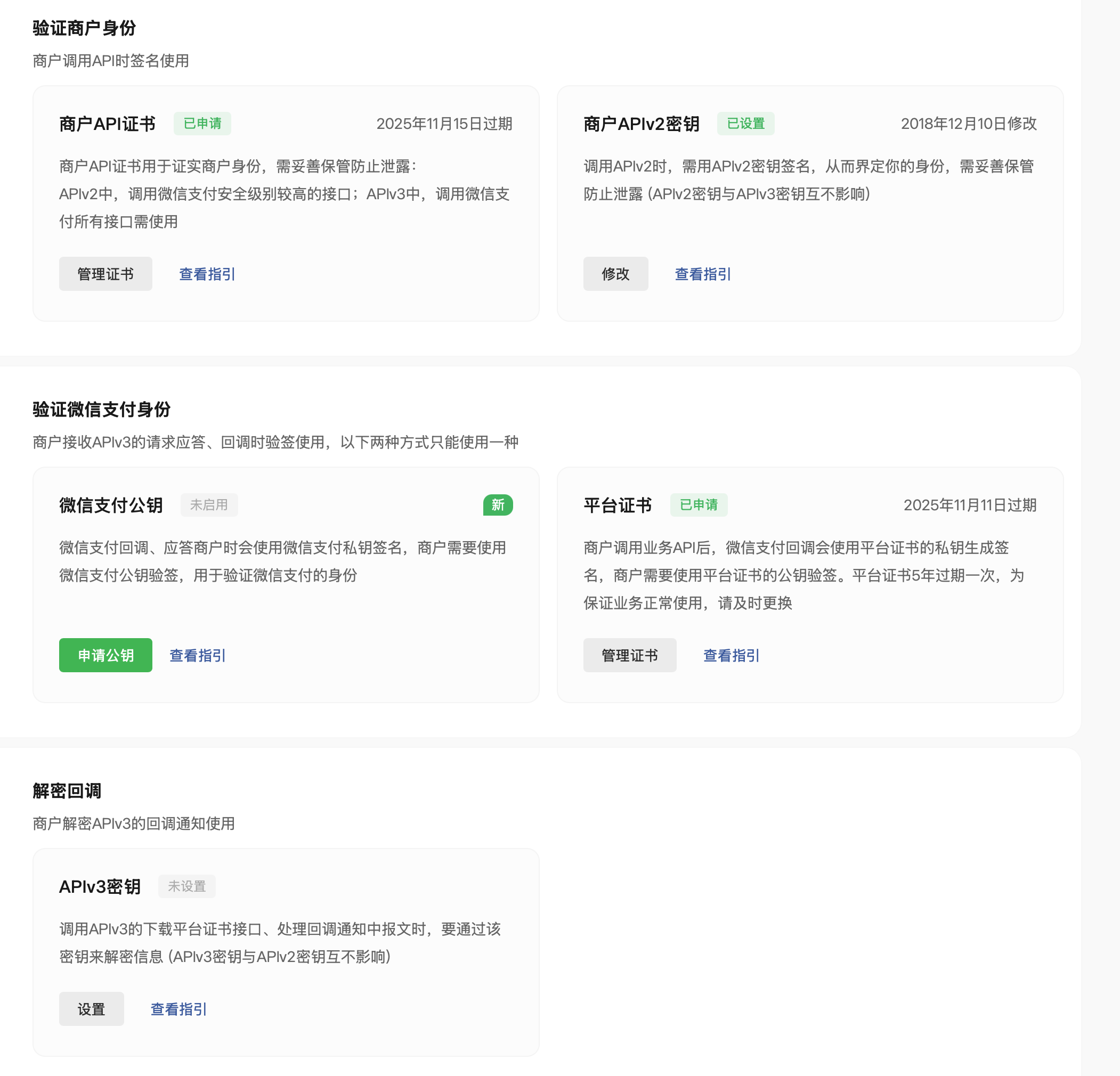 微信支付公钥和平台证书都是用于v3版本接口的验签及敏感信息加密,公钥没有有效期,便于维护,建议使用公钥方案:https://pay.weixin.qq.com/doc/v3/merchant/4012153196