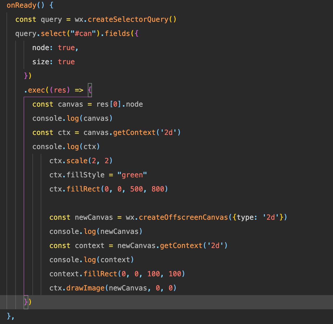Page({ onReady: function () { wx.createSelectorQuery().select("#myCanvas").fields({ node: true, size: true }).exec((res) => { const canvas = res[0].node; this.canvas = canvas this.ctx = canvas.getContext("2d") }); this.drawCamera() }, drawCamera: function () { const camera = wx.createCameraContext() this.count = 0 const cameraListener = camera.onCameraFrame((frame) => { if (this.count < 10) console.log(frame) this.count++ this.canvas.width = frame.width this.canvas.height = frame.height let data = new Uint8Array(frame.data); let clamped = new Uint8ClampedArray(data); let imageData = this.canvas.createImageData(clamped, frame.width, frame.height); this.ctx.putImageData(imageData, 0, 0, 0, 0, frame.width, frame.height); }) cameraListener.start() } })怎么没人回答?