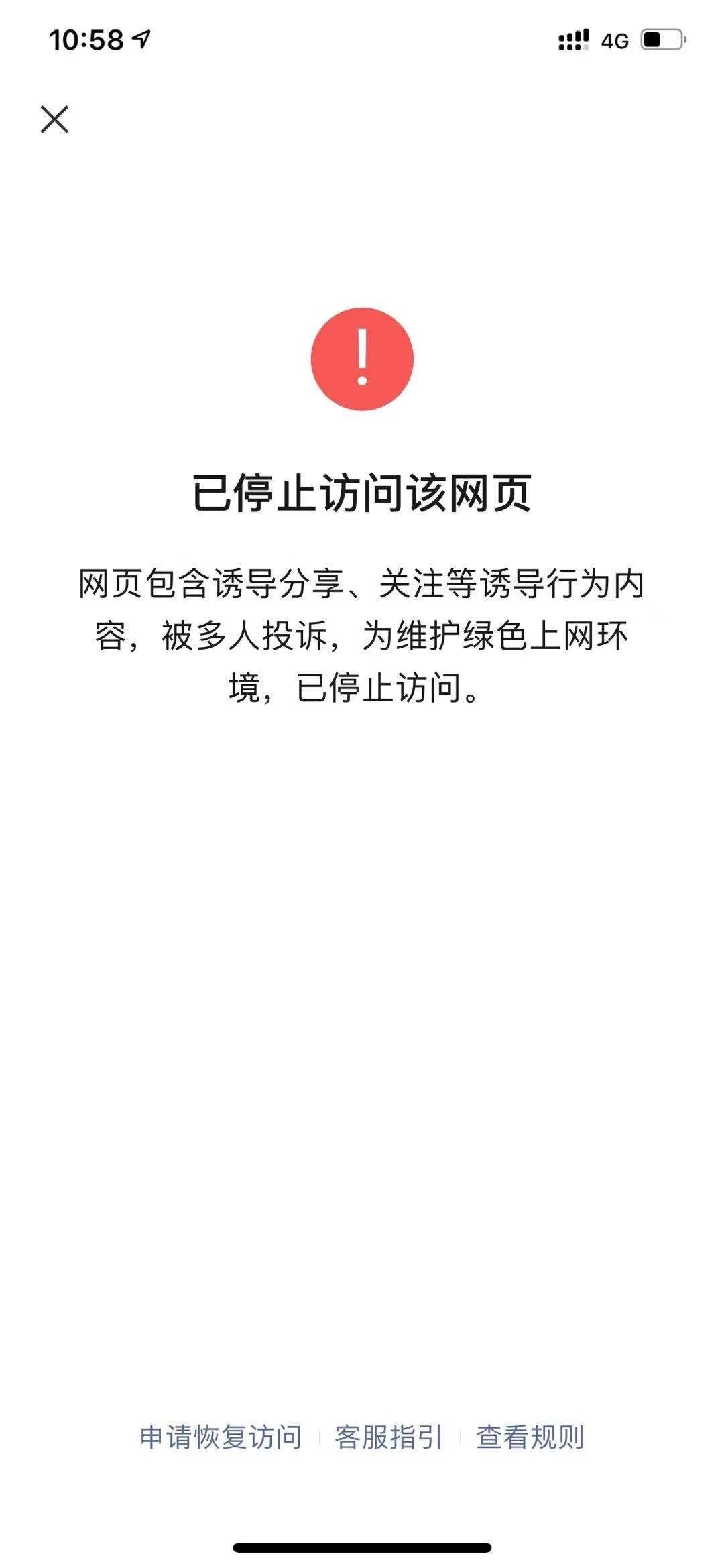 公司活动的短域名:9url.cn 出现禁止访问提示信息,进行了两次申请均被拒绝。不知道这个域名下,哪个页面存在问题,导致微信内不能访问?