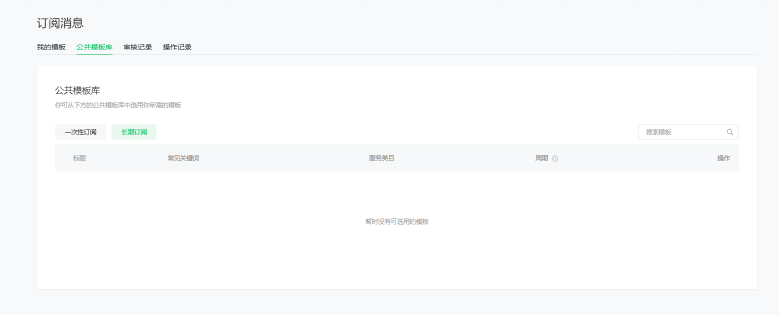 你好,长期订阅消息目前只对政务民生、医疗、交通、金融、教育、设备等部分二级行业类目进行开放,仅支持少量民生公共服务节点通知,并非所有场景都能支持,请谅解。如有新增长期订阅模板需求,可按以下格式提供相关信息帮助评估;