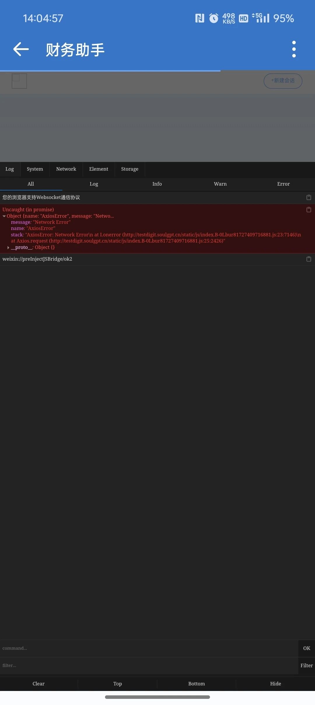 企业微信自建应用电脑端可以打开,在手机端打开报错AxiosError: Network Error?