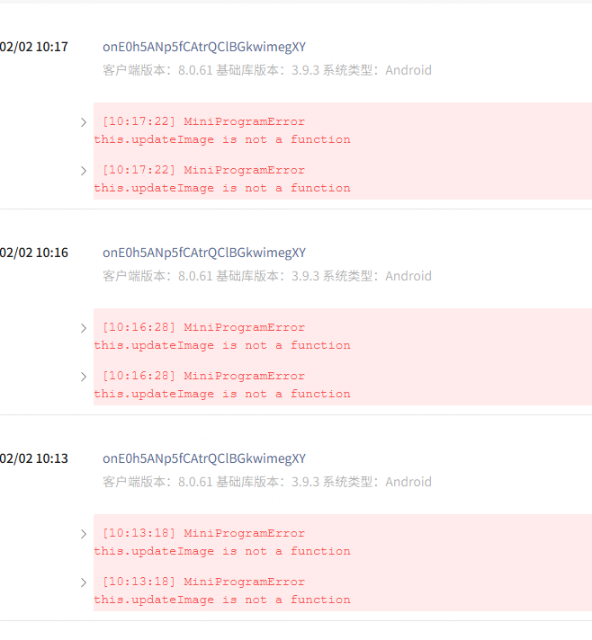 29号晚上开始频繁出现这个错误,开发者工具也报错,本地代码根本没有调用updateImage这个方法