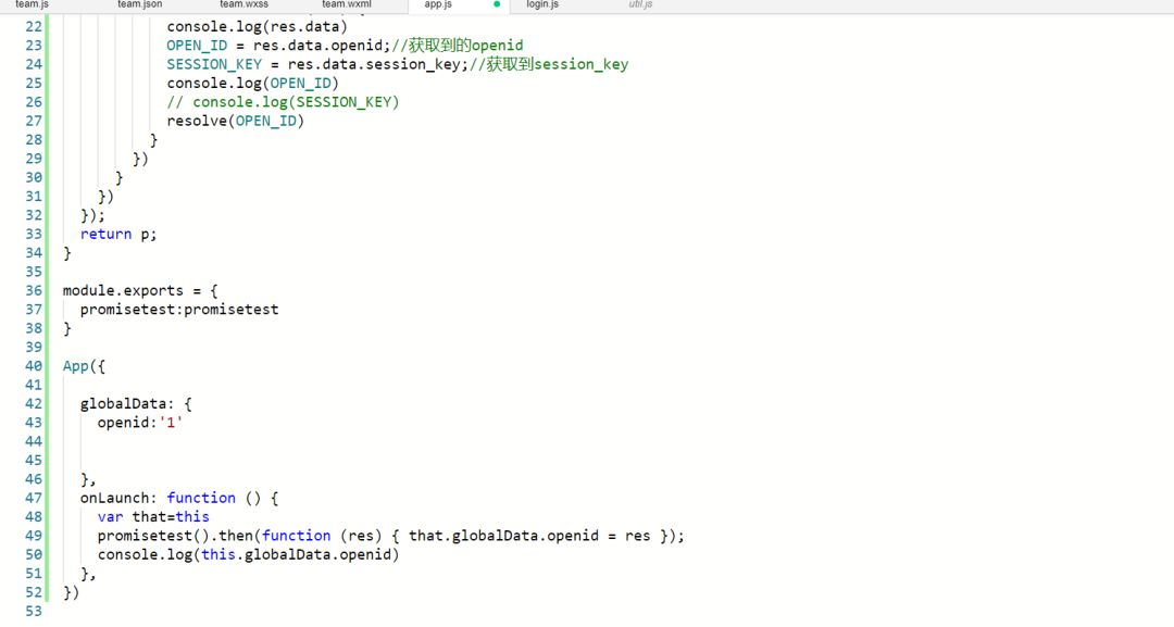不是tab 就普通的页面。打算做一个创建团队/加入团队,要用到openid 所以在想能不能用全局 直接过来。这个是毕设,之前也没学过,也是这几天自己琢磨的。代码可能会比较傻,但还是有功能。就是微信小程序这个异步真的是有点难懂。![]()