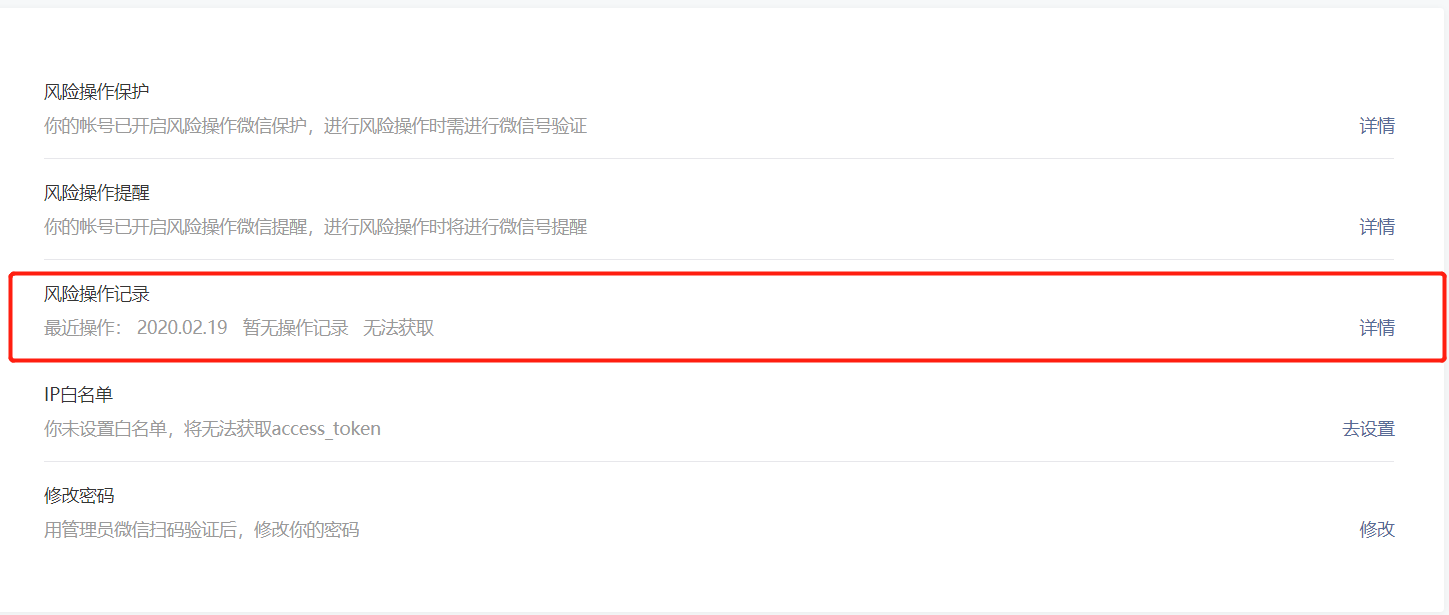 微信公众号登录之后,在安全中心 —— 风险操作记录 查看