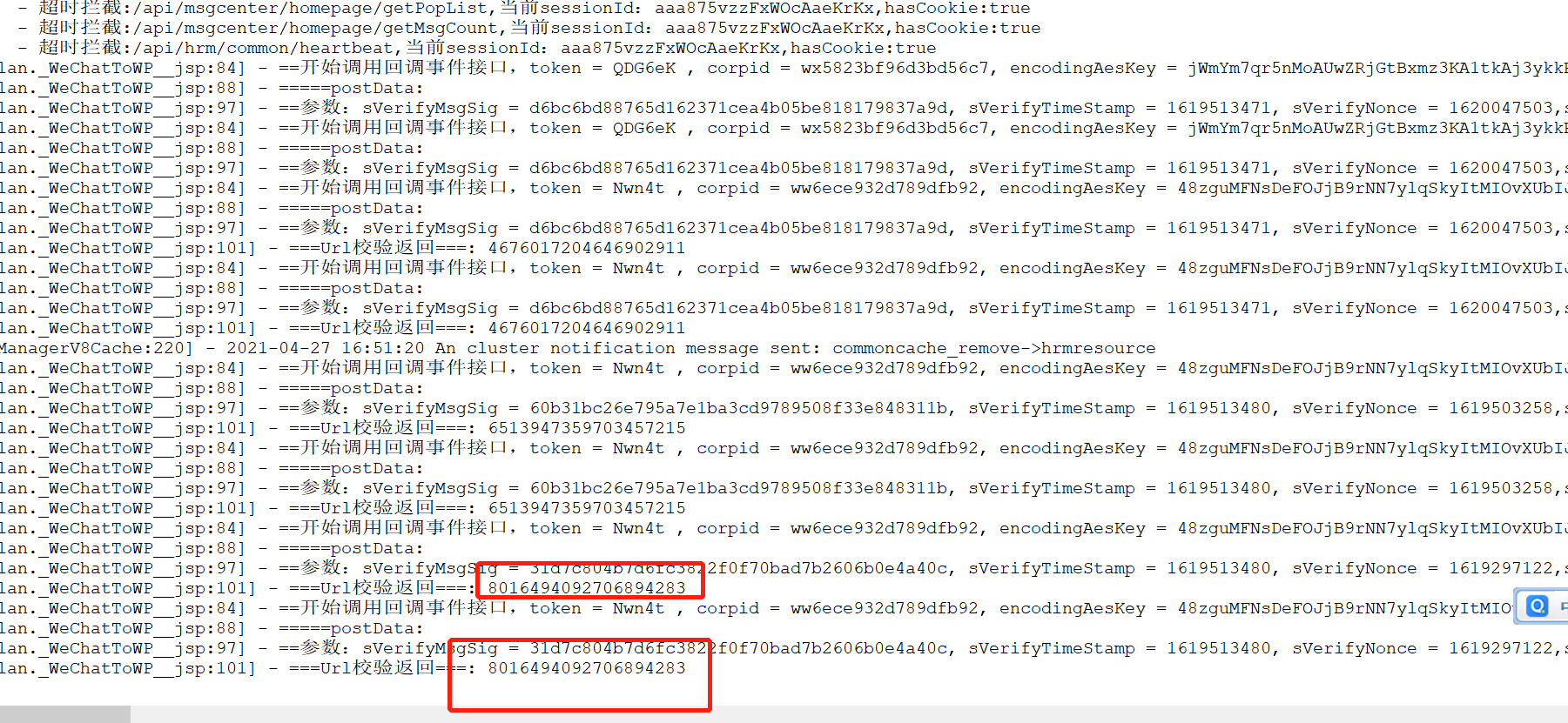 你好,没有返回解密的明文,所以是没有通过的 https://oa.uic.edu.cn/workplan/WeChatToWP.jsp?msg_signature=7dec3e1cb6ba5b725cfc5d4aec82dcd137e02912×tamp=1619347256&nonce=1619184547&echostr=mLXT3Iv2nbFxRTmw9KwxHTBfLHXq8lFC6TDYZ8gcZdQVhyLbZY%2F%2Bt7CSt6Ty2NS2wkOIbKIHRob0kokTz%2Fc7Pg%3D%3D