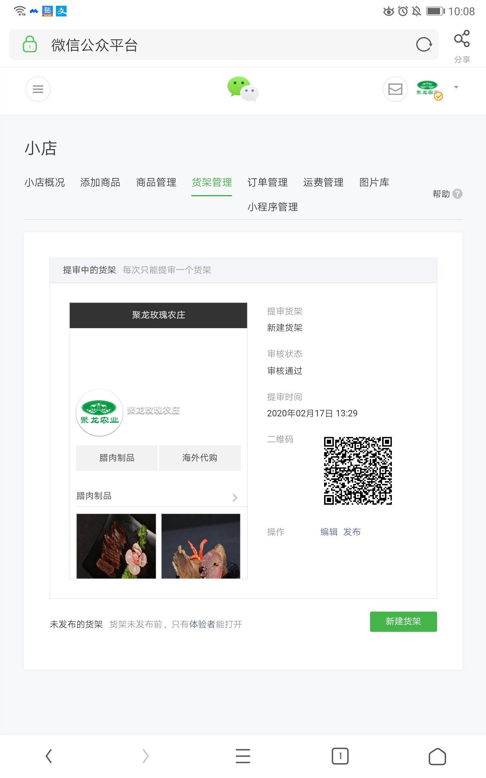 货架通过审核后,把货架提交发布。更多微信小店问题可以联系到我。