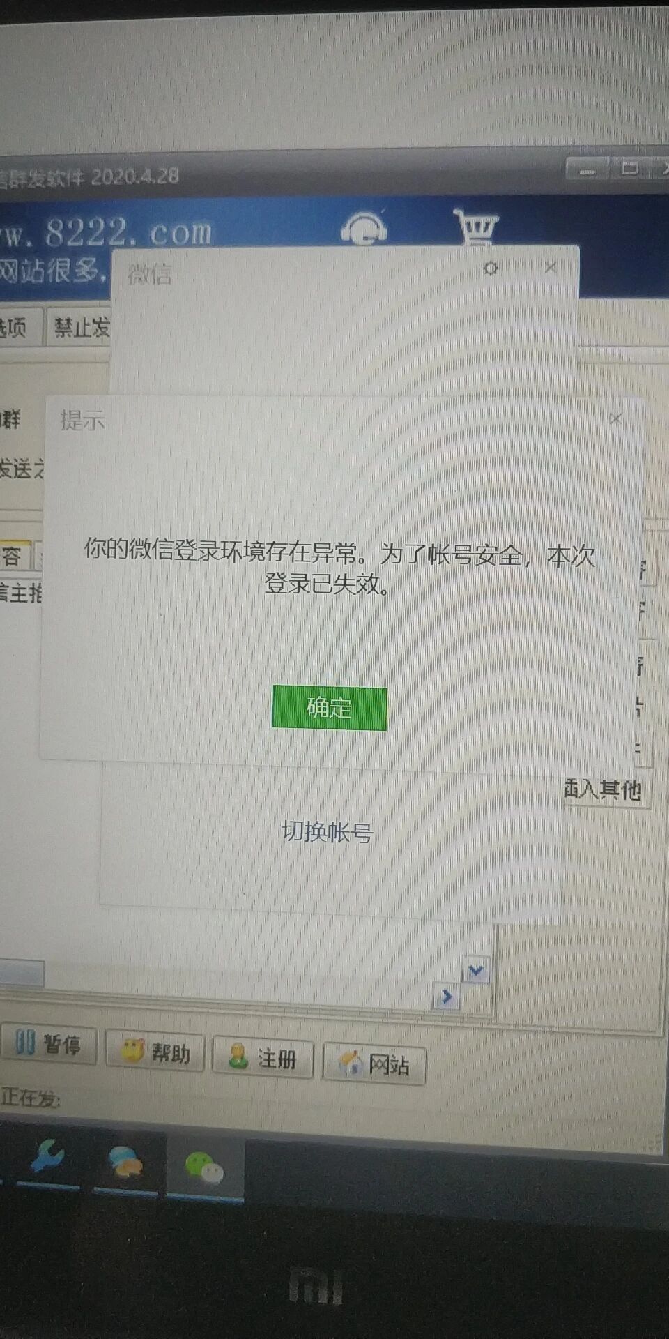 电脑微信登录一发信息就强制退出显示电脑环境登录异常,微信号hu7728543 帮忙解决一下
