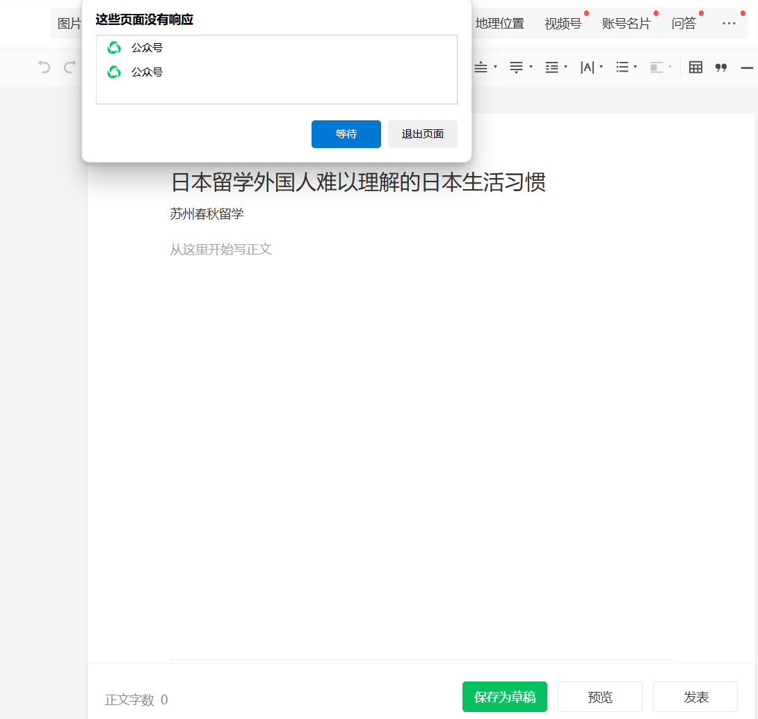 打开微信公众号,无法粘贴内容进去!只能用shift-ctrl-n键进入
