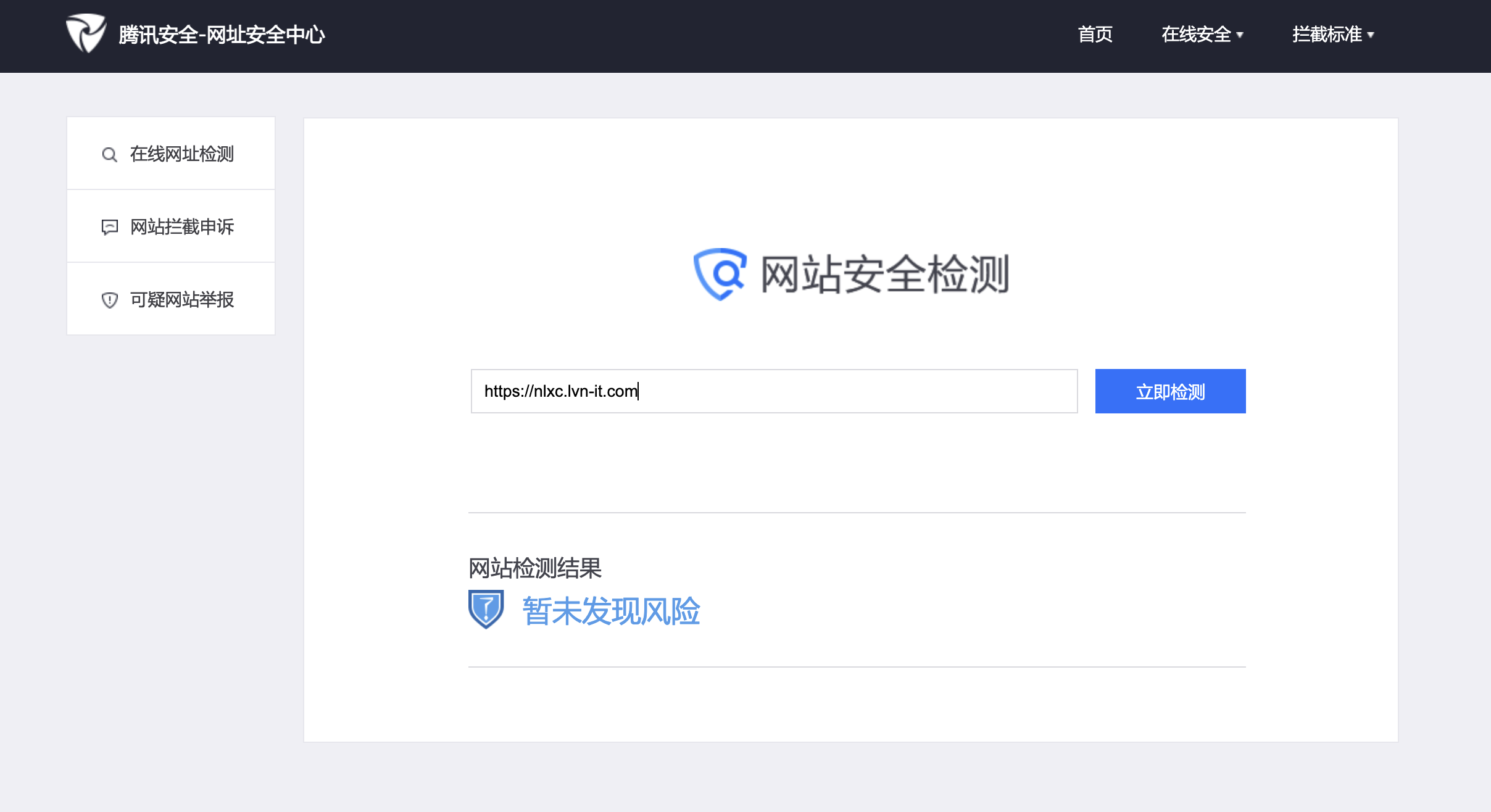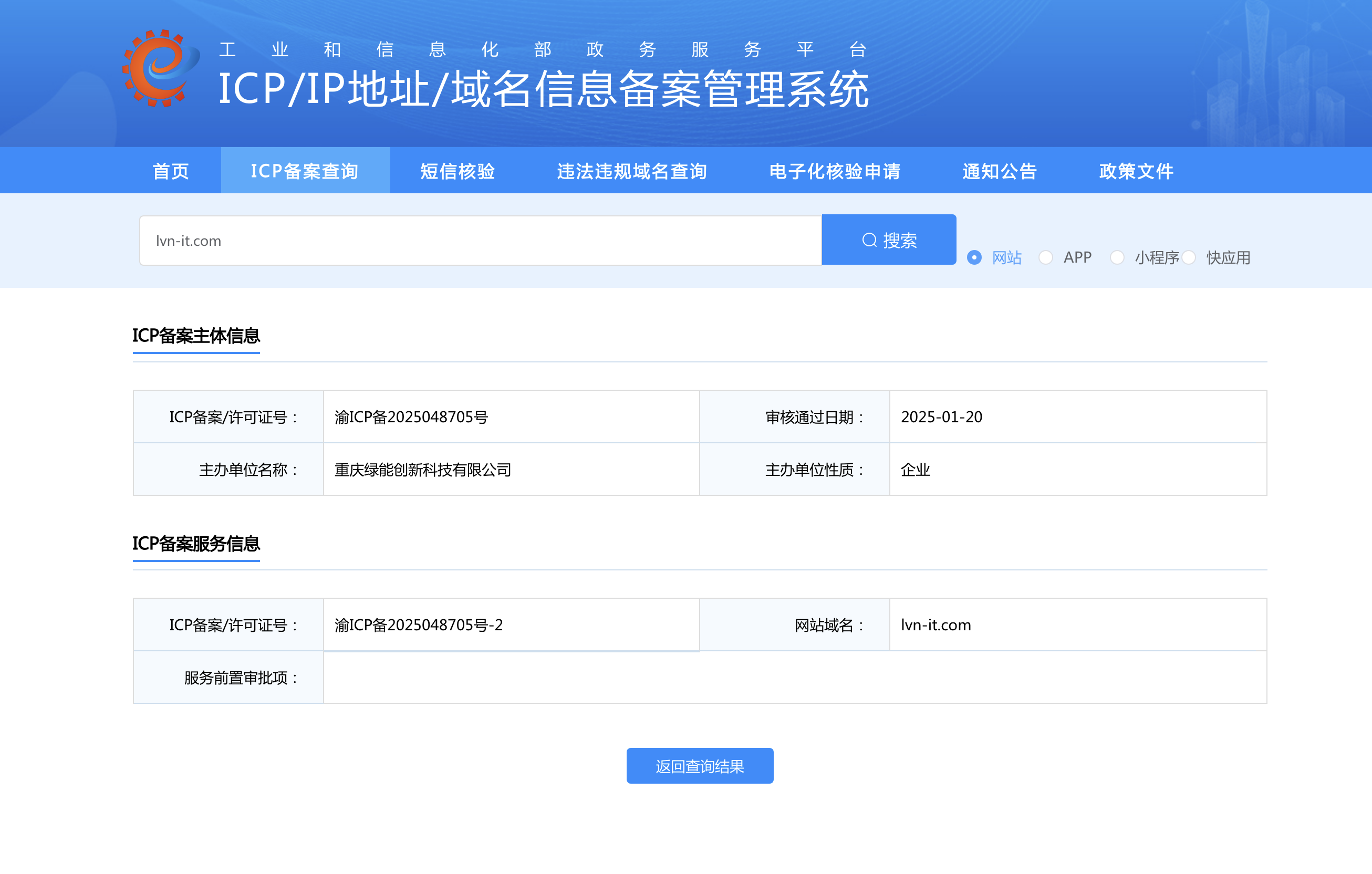 您好,我司网址 :https://nlxc.lvn-it.com,使用微信打开时提示 “ 网页存在安全风险,为维护绿色上网环境,已停止访问”,备案号:渝ICP备2025048705号-2,申请恢复正常访问。