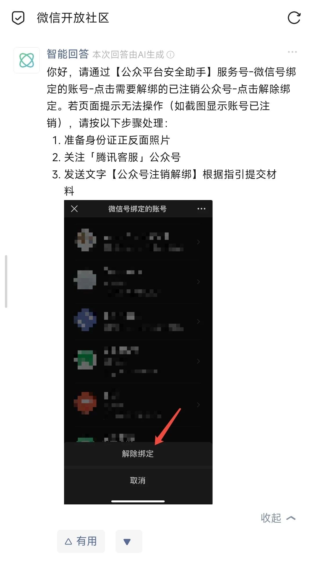 请注意,用【身份证】绑定的。 很早之前我用身份证绑定了一个公众号的管理员,后来此公众号因长时间未使用被系统注销,但是绑定关系还在,导致我的身份证号不能绑定其他公众号管理员。 目前因此公众号被系统注销,我也无法登陆解除绑定。 请问如何解决这个问题? 之前之前这个问题有个回答,但是用【微信号】绑定的方法。而用【身份证】绑定的,无法解除。请看附件图片。