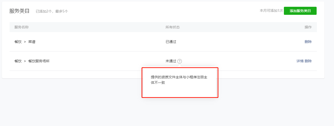 不知为何会显示“提示的资质文件与小程序注册主体不一致”