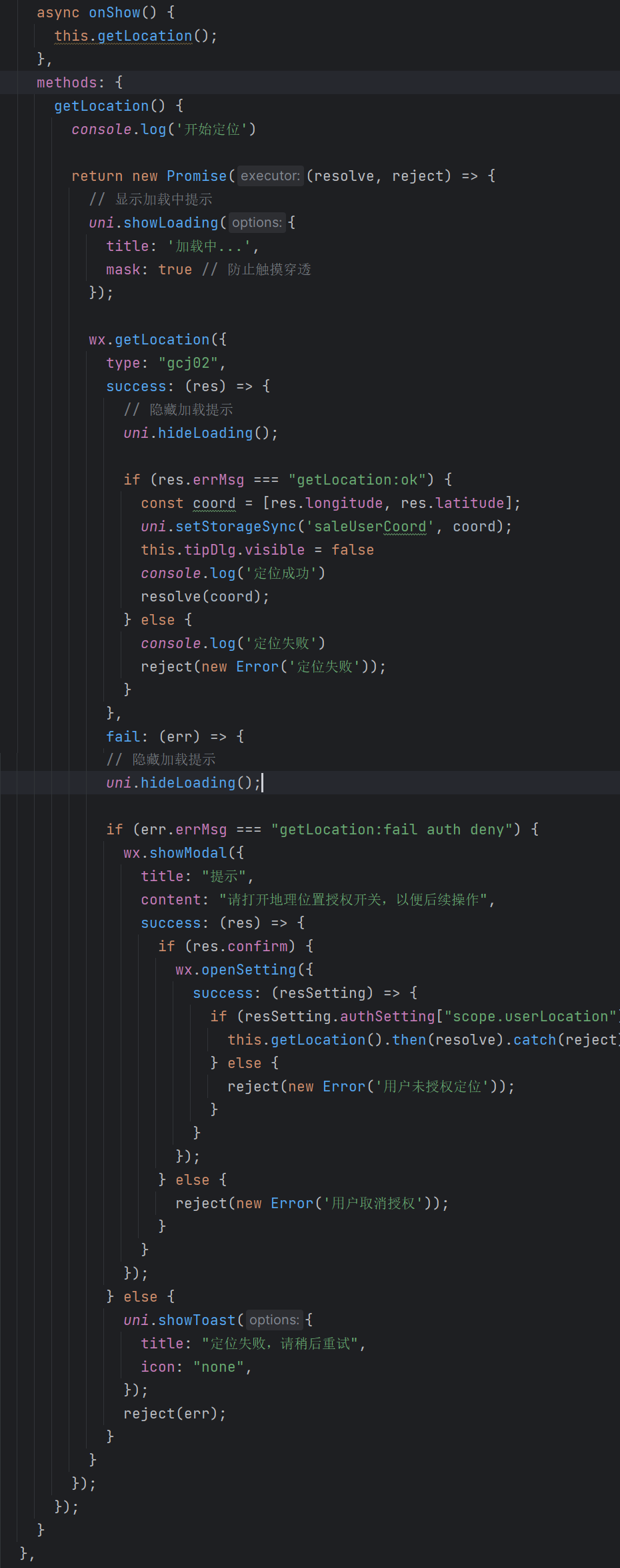 首页一进入就调用wx.getLocation,但一般手机都可以,但有两台手机vivo,偶尔(这概率可能就一个星期一两次)进入会报错,一直在转圈oading,技术人员查看了日志,控制台报上面的提示错误,隐私更新了的. 但过段时间或者第二天又好了