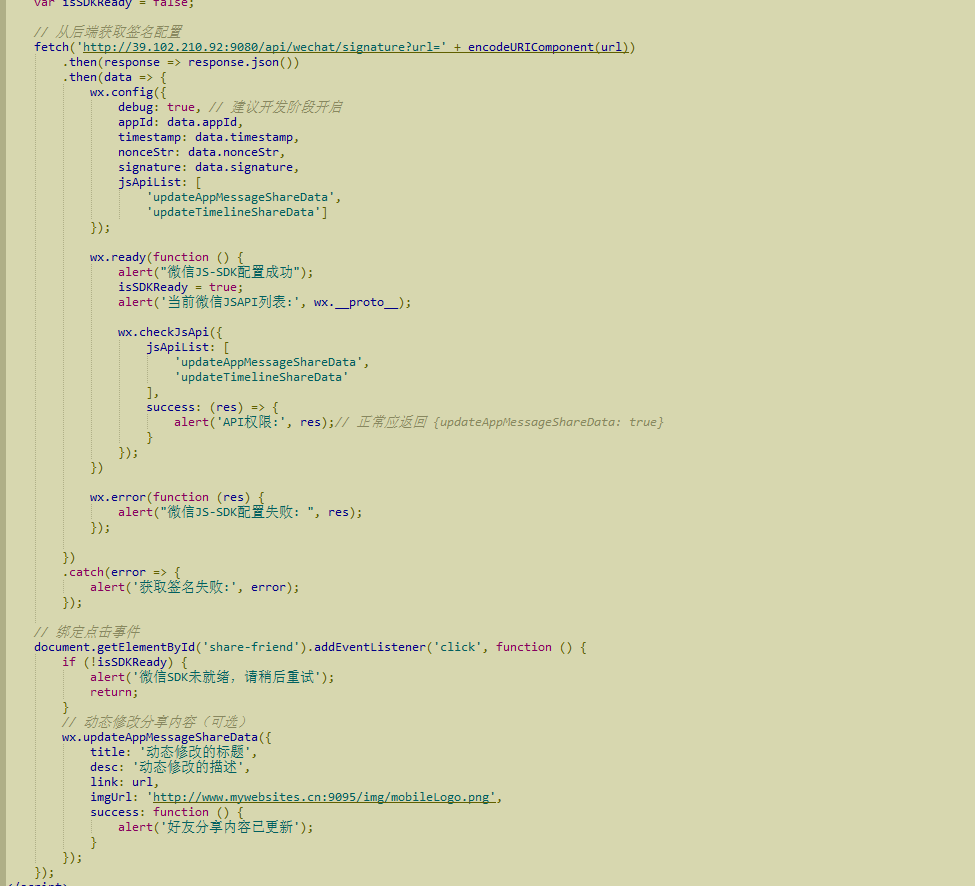 “当前微信JSAPI列表”弹出为空,“API权限”弹出也为空,最后弹出“好友分享内容已更新”,然后就没有反应了,测试号可以真实的发起分享吗?