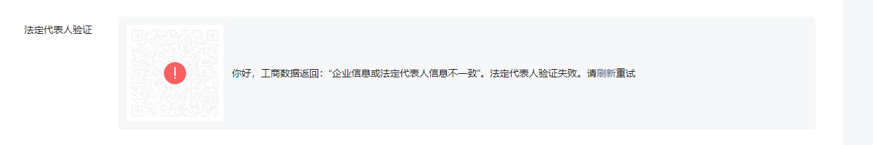 申请公众号时,法定代表人信息正确,但是到最后一步人脸识别时,一直提示:“企业信息和法定代表人信息不一致”,法定代表人验证识别,确认是法人本人微信扫码,确认微信绑定了银行卡,确认微信认证是法人的。申请了多个公众号都是一样的情况,