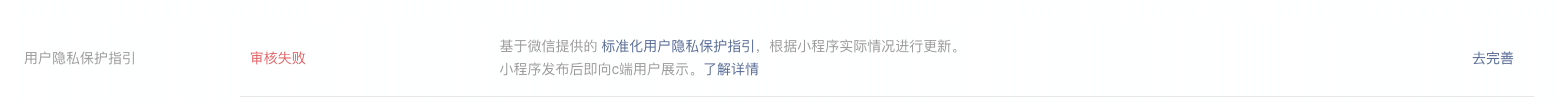隐私协议编辑了半天,某一项描述没通过,直接审核失败,点击去完善需要重头在填写一遍,体验很差,希望能够退回到之前的没内容编辑状态;