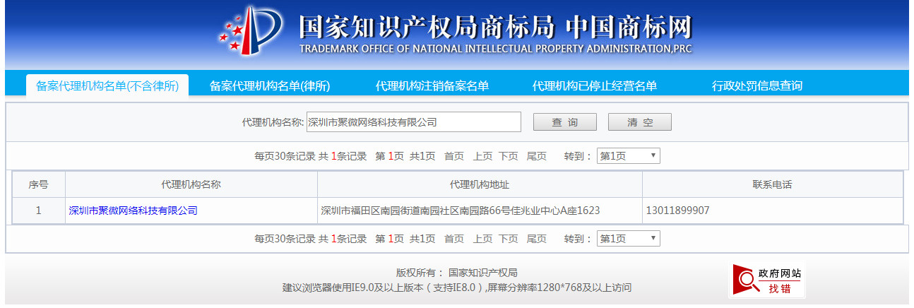 而且商标局代理机构目录里也可以查的到