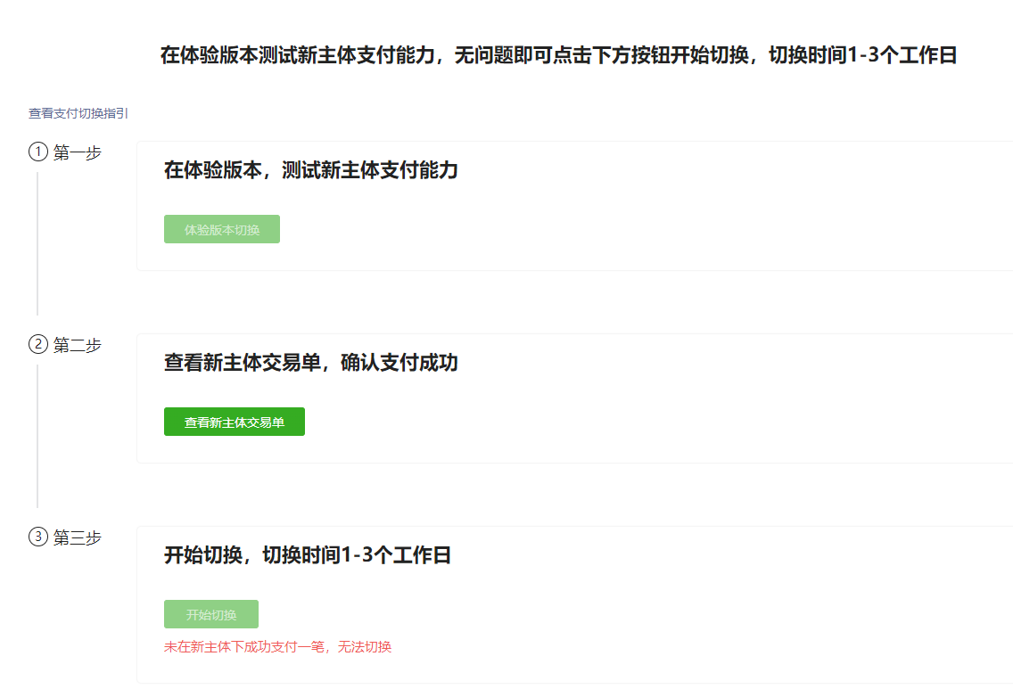 在该步骤中,左上角 查看支付切换指引 链接无效(点击无反应)。该步骤具体需要如何操作?