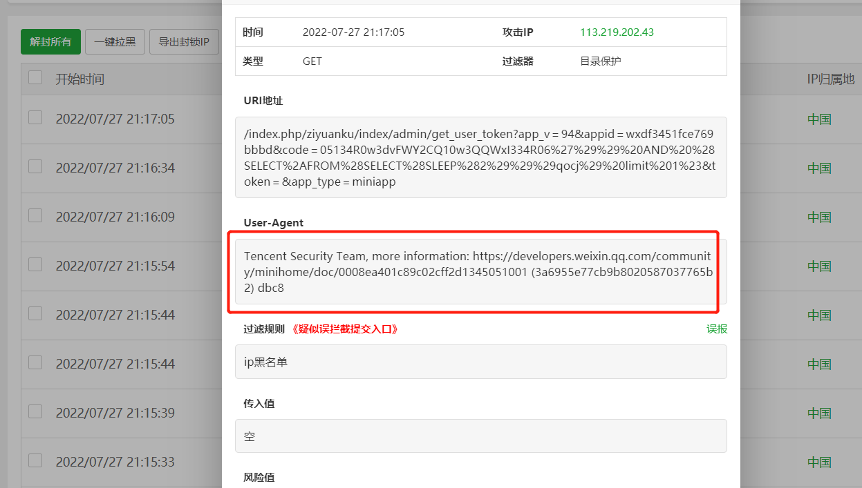 腾讯在对你的小程序后台进行安全检测,应该不会有太多请求啊。是不是你们阈值设太低了?