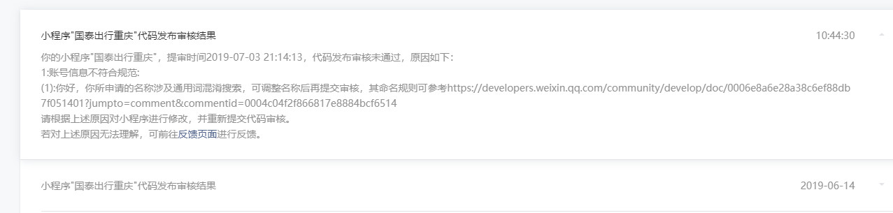 年初通过的更名,之后更新都正常,今天突然审核不通过,这还半年都不到。