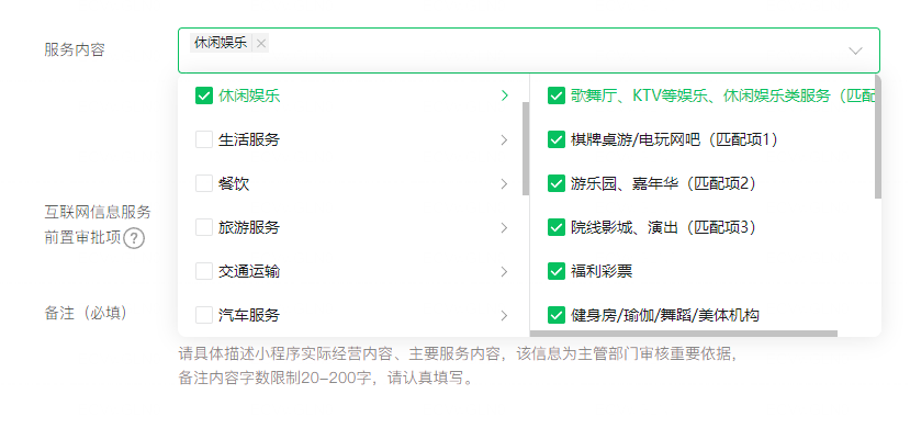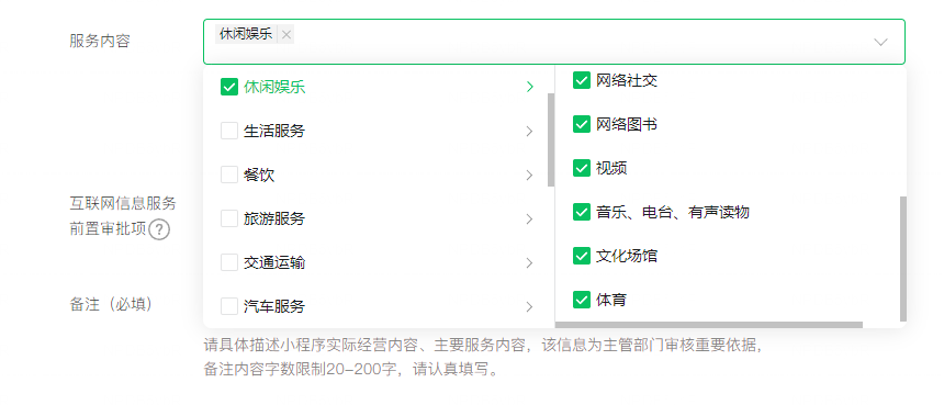 小程序备案服务内容建议根据备案小程序实际从事运营内容尽可能选择相近的服务内容进行备案。详情请参考:https://developers.weixin.qq.com/miniprogram/product/record/receord_category.html