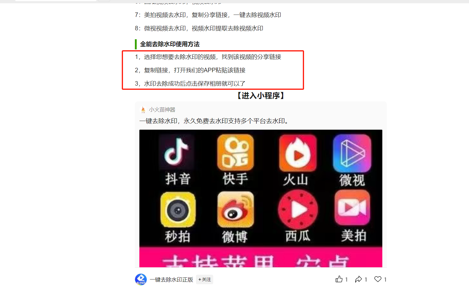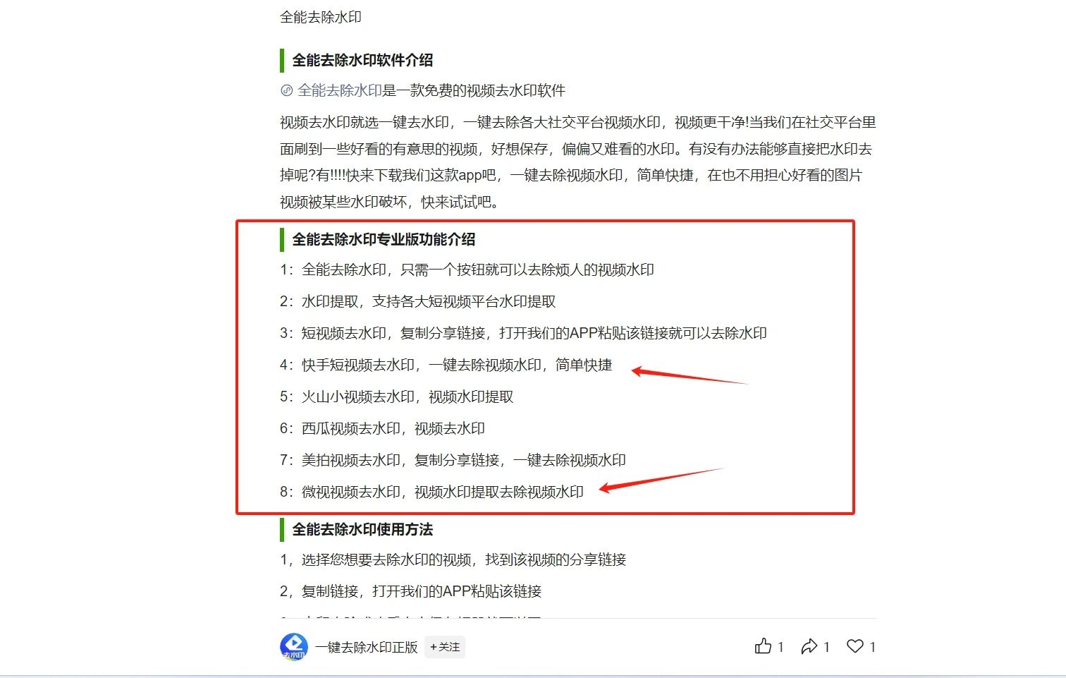 公然发文,去除抖音、快手、腾讯公司旗下的微视、快手的水印,没经过权利人授权同意,侵犯他人的版权等知识产权。严重侵犯腾讯公司旗下微视平台权益,恳请官方严肃处理,直至封号!