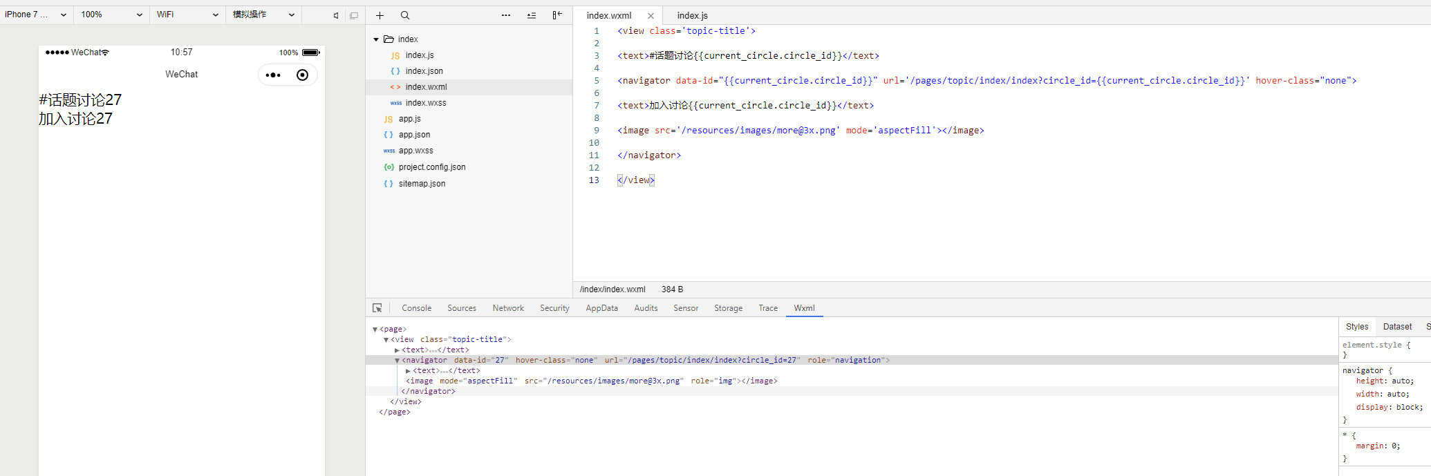 不是,就是在当前页面,当值发生改变的时候navigator里边的值不会跟着变,但是当前页面的其他地方的值都变了,就是navigator URL中的变量值一直不变,看我的截图,对照上面的代码,下面的wxml你就知道问题了。
