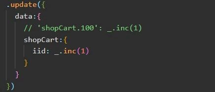 var iid = 100, field = 'shopCart['+iid+']'data:{[field]: _.inc(1)}var iid = 100data:{shopCart:{[iid]: _.inc(1)}}已经实现功能了