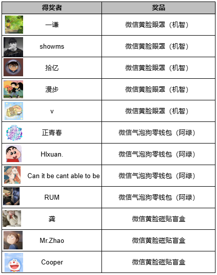 我们精选以下 12 位用户的回答并送出微信周边礼物。2025 年 8 月 26 日前,我们将通过社区私信联系以上得奖者确定邮寄地址,如本周内未收到回复(即 2025 / 8 / 29 0点前),视为放弃奖品。