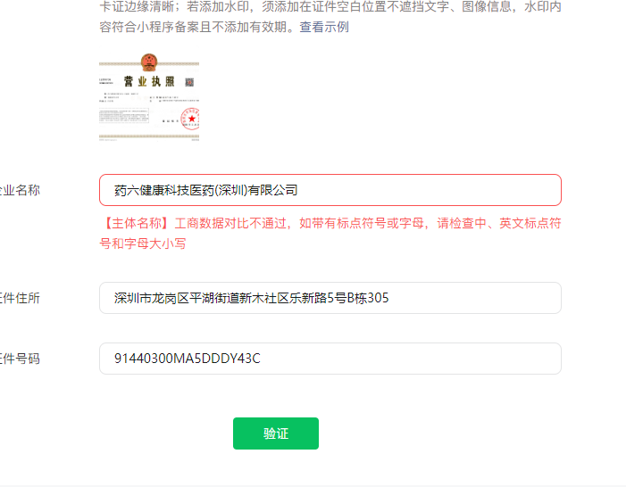 小程序备案,执照名称有括号怎么填,中英文都试过了,还是对比不通过?