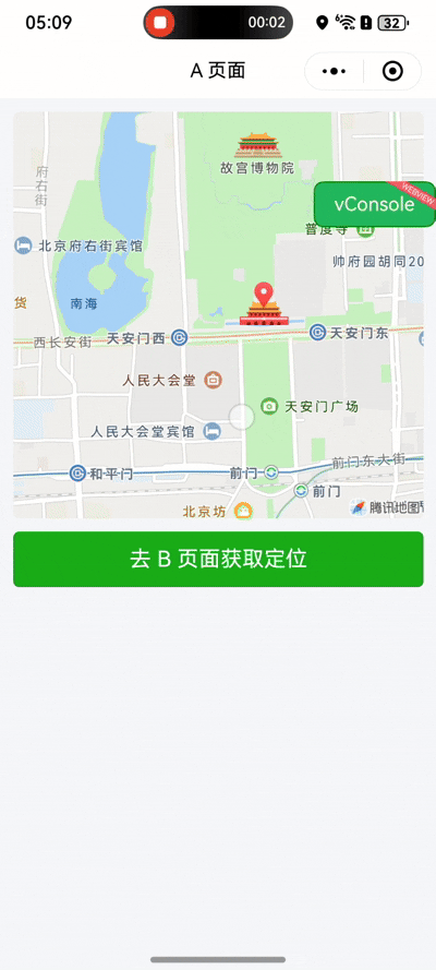 2,地图页,跳新页面,摄像头区域不是直接用的原生的,是单独引入的camera组件,初始化后,再返回即可