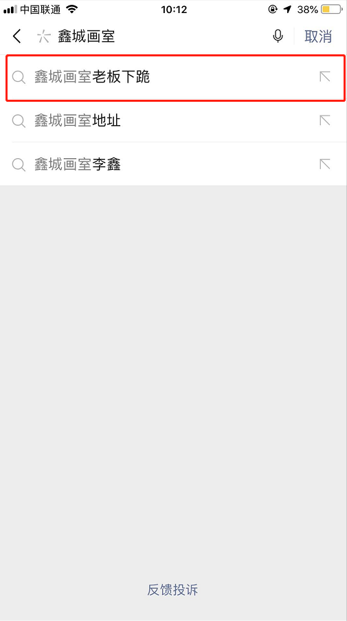 在搜一搜里搜索“鑫城画室”时出现:鑫城画室老板下跪