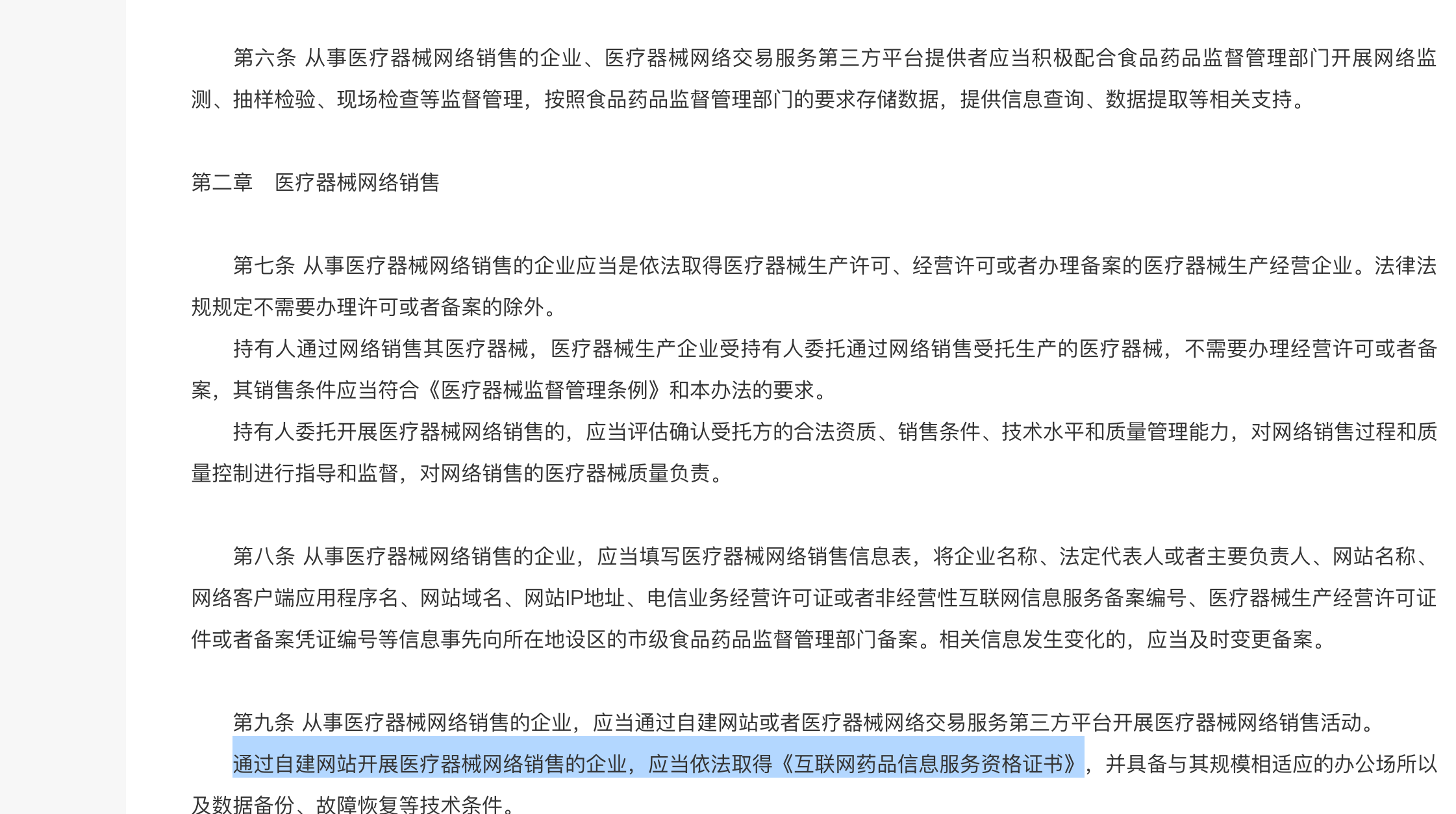 涉若用户涉及医疗器械销售等服务,且不需取得《互联网药品信息服务资格证书》,建议可先提供包含但不限于当地政策等相关材料说明,以供评估。